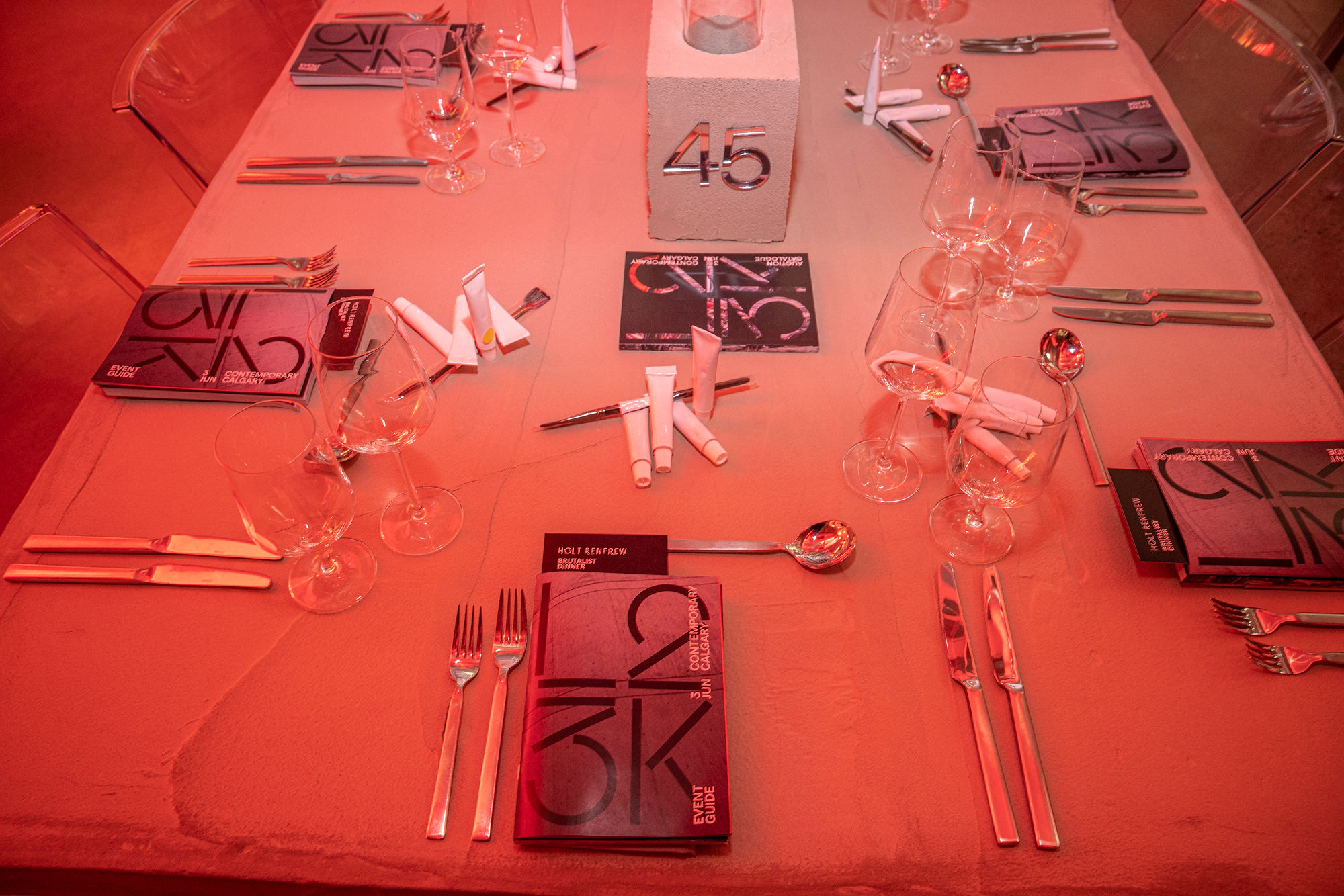 This year LOOK was a celebration of the beauty and uniqueness of Contemporary Calgary’s gallery. Renee Pittet of One West worked closely with the gallery’s amazing team, CEO David Leinster and L23K Gala chair Kelly Streit to fashion the evening into an ode to the iconic brutalist building in downtown Calgary. The mission was to bring the brutalist architecture of the space-age-inspired building to every detail of the evening so donors and fans of the gallery would get to know Contemporary Calgary in an intimate and exciting new way.