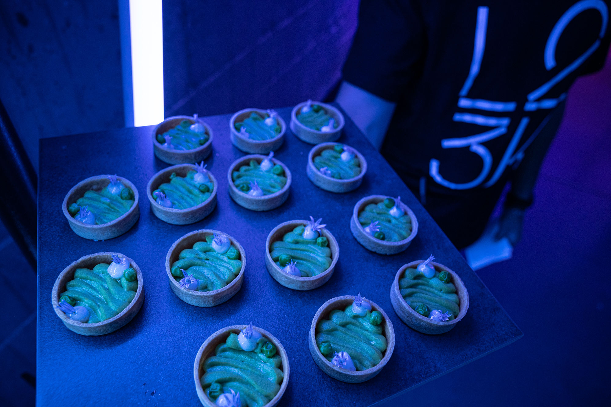 Catering rivalled the decor. Courses were fully béton-brut inspired, subverting guests’ expectations of what a dish can become. Concord Catering wowed, presenting the main courses as blocks stacked into architectural structures. Salads became one with the decor in bowls that looked like they could have been shaped from the same concrete as the tables, and colour was kept to a minimum while the flavour was fully present. Dessert invited each guest to play with their food, offering edible paint to design – and eat – their own masterpiece.