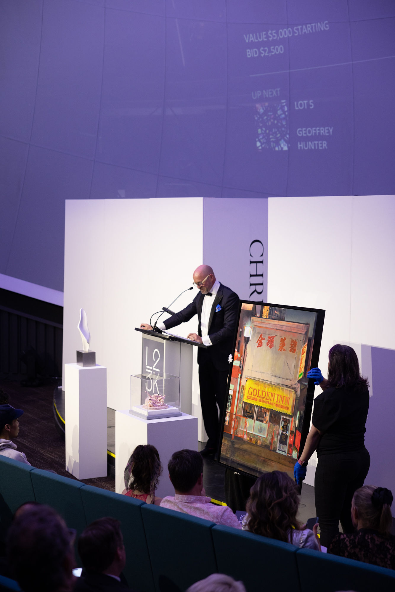 Stellar lighting was designed by Pierre Marleau with Orange Frog Productions, and he nailed it, maneuvering the light to play up the dramatic shapes throughout the room. There was no shortage of drama as guests moved through the evening; every element mirrored the striking, sharp lines and curved dome the building is known for. Even the dessert came out shaped like the big white dome that once housed the Centennial Planetarium.