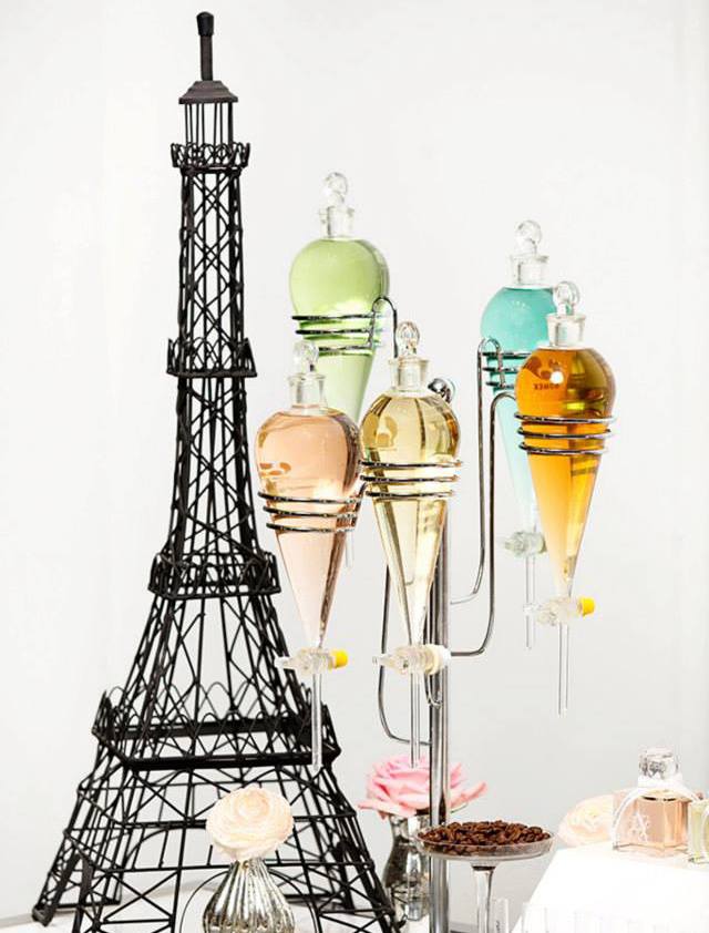 Resembling the look of a science lab – but cuter, the fragrance bar is a perfect addition to bridal showers, weddings, birthdays, corporate events, and incentive programs that can be set-up in any given space, entertaining in an intimate setting such as an evening of cocktails with friends or a full scale event with a crowd of hundreds, enjoying a celebratory formal dinner