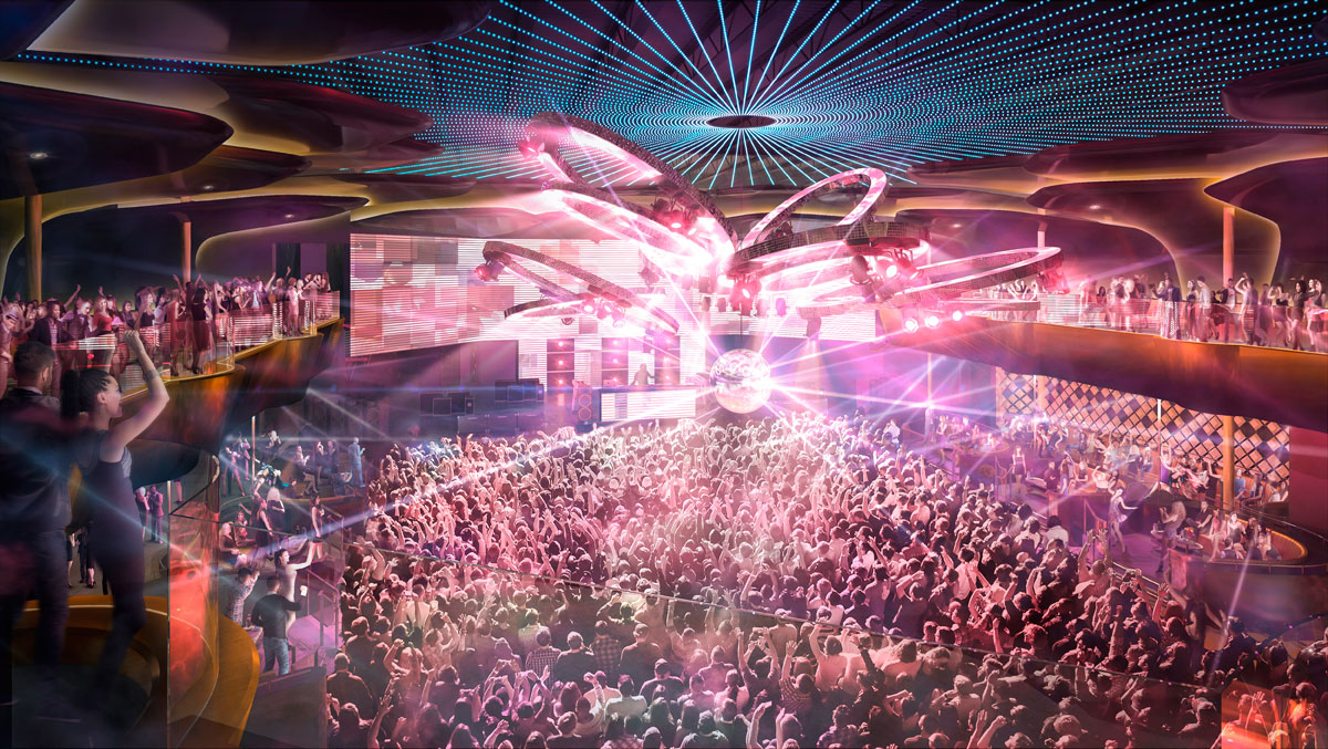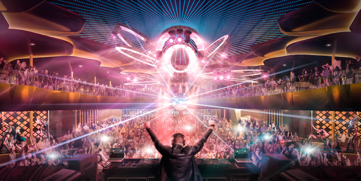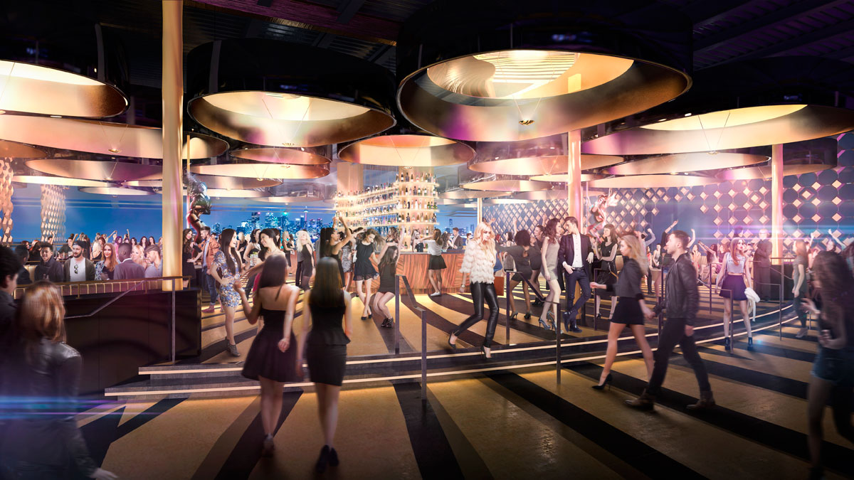 Designed by Studio Munge, the 45,000 square foot space will be a visual and architectural masterpiece. It will feature two floors with a private VIP entrance, sprawling views of the city skyline and a seamless connection to the luxury outdoor lounge, Cabana PoolBar. The colour scheme is black and gold and will feature high gloss contemporary surfaces, unusual animalistic and vegetal patterns and subversive graphics, a sculpted ceiling, along with state-of-the-art visual displays.