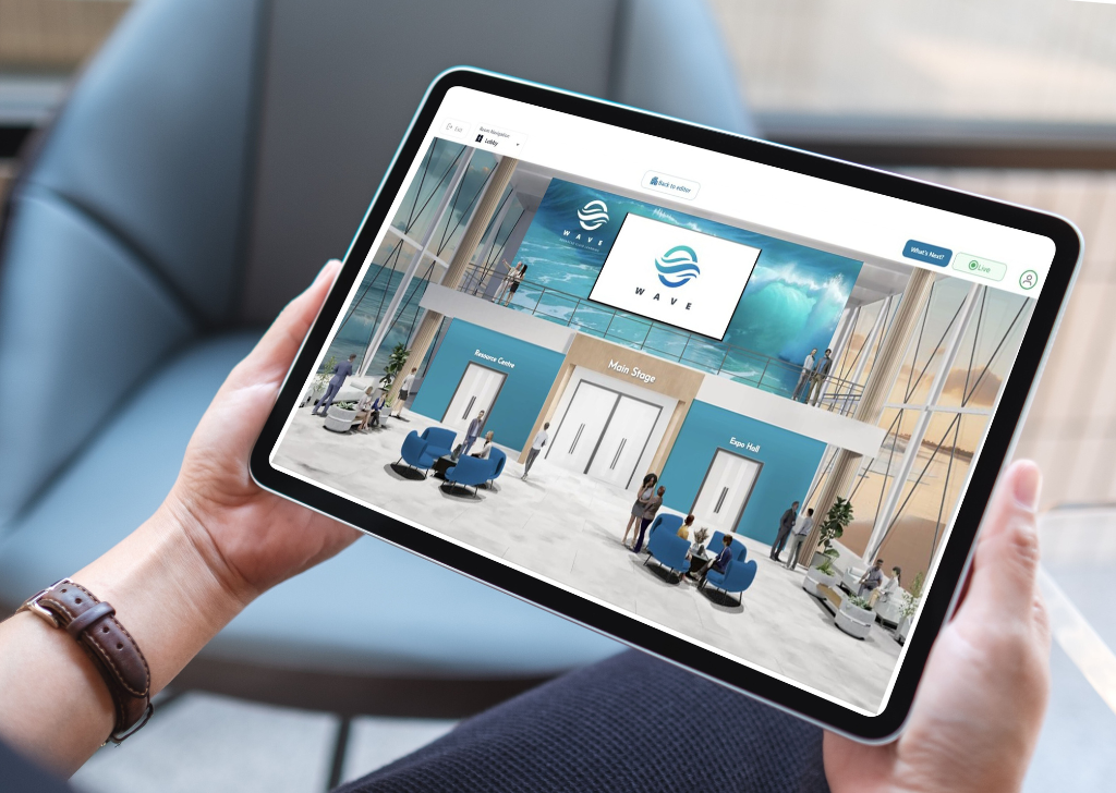 - A fully customizable branded event lobby, main stage, and breakout rooms